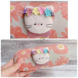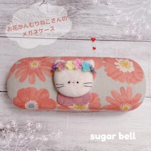 小さなお花の冠をつけたしろねこさんのモチーフが付いたハードタイプのメガネケースです。