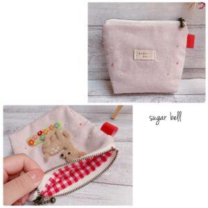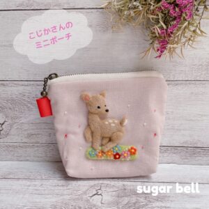 こじかちゃんが映えるように、ポーチ自体は無地のペールピンク
