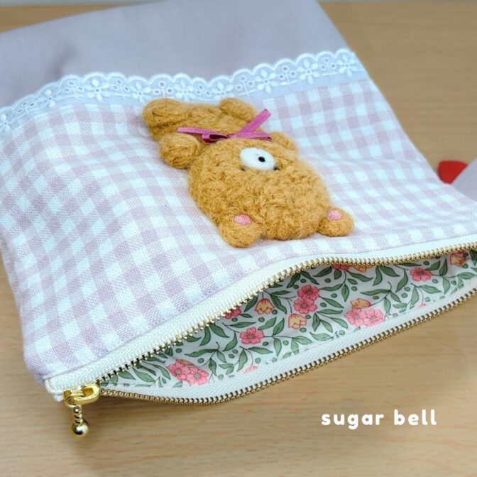 ふわふわの羊毛フェルトモチーフが ポーチを開くたびにほっこり癒してくれます。