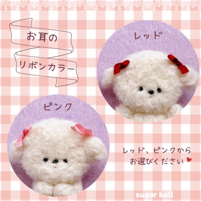 しろいぬちゃんのリボンカラーとポーズがお選びいただけます。